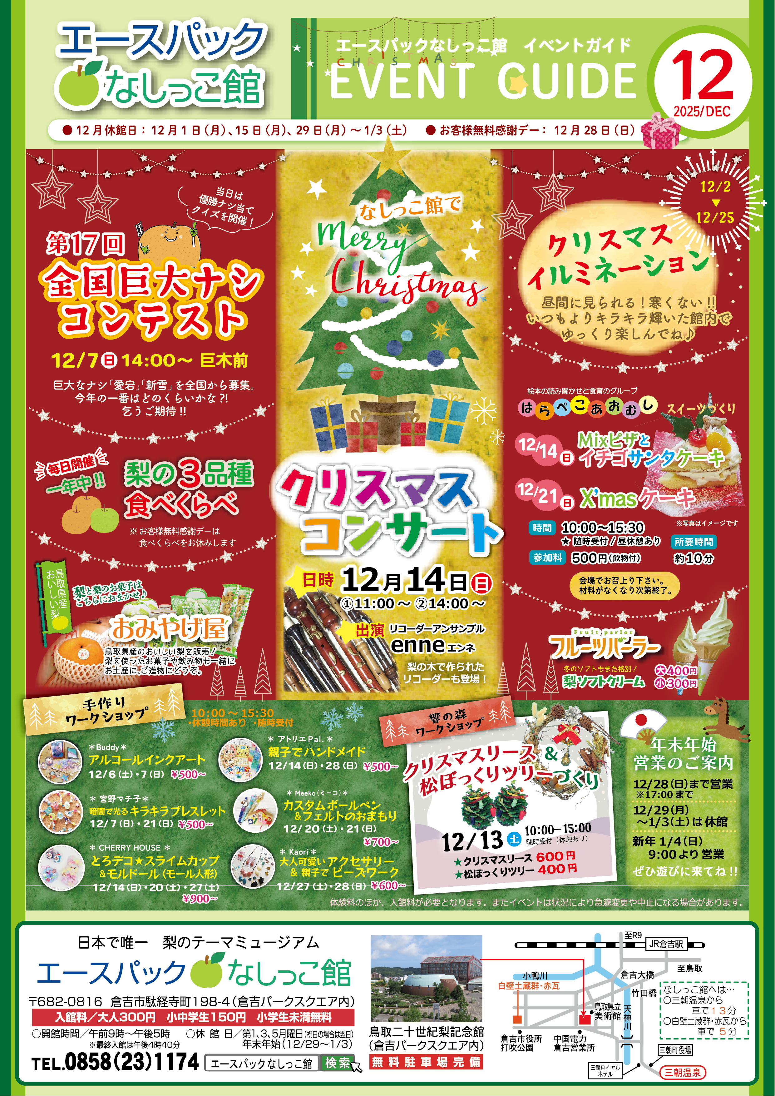 12月はクリスマス気分満載のなしっこ館でお楽しみください♪